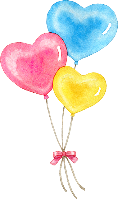 パステルカラーのカラフルなハートや花、星の形をしたバルーンで飾り付けられた屋台たち。
